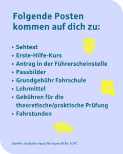 Manche brauchen ein Auto, weil sie sonst nicht zur Schule oder Arbeit kommen. Andere möchten einfach nur ein Stück Freiheit und Unabhängigkeit genießen. Was auch immer der Grund dafür sein mag, ein Führerschein ist die Grundvoraussetzung, um selbst ein Auto zu fahren. Dieser kostet je nach Region und Fahrschule zwischen 2.100 und 3.800 Euro. Am besten sollte dafür früh gespart werden.